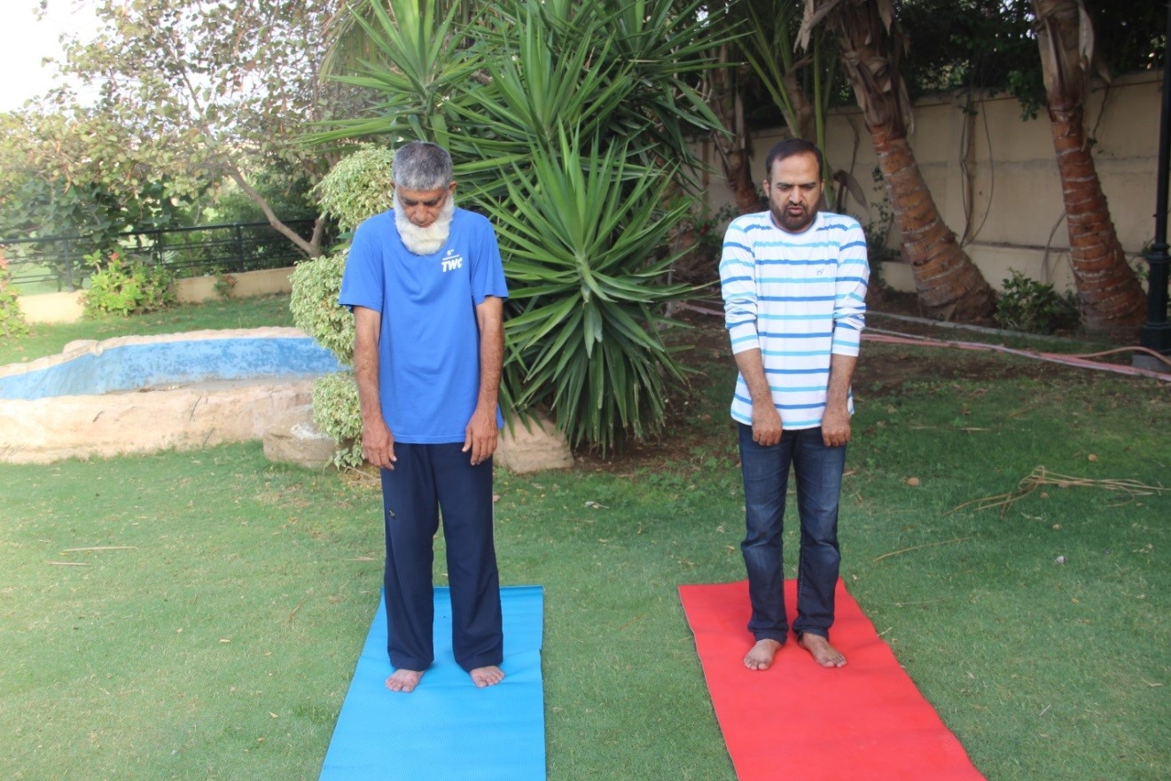 Sit in Easy posture. Palms will be on respective knees (you have to hold the index finger against tip of thumb, having the other three fingers straight). Close your eyes. Now slowly breathe in and out. Concentrate on your breathing. Do this for 10 times. One time refers breathing in and out.